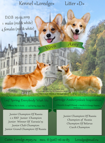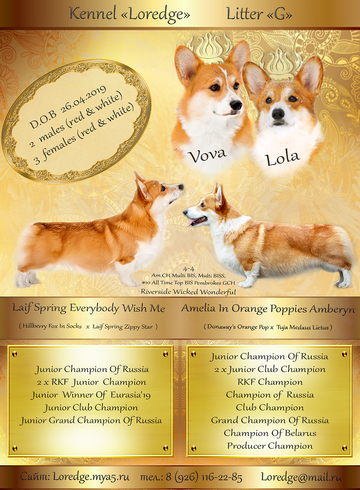 Мама - Loredge Amberynlea's Inspiration ( Dwynella Rough 'N' Rowdy х Amelia In Orange Poppies Amberyn ) - Юный Чемпион России, Чемпион России, Чемпион Беларуси, Чемпион Чехии, ЮСС, СС